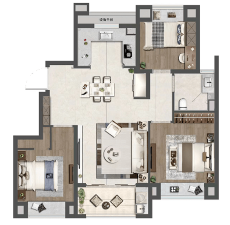 且还是飞机户型,各功能间相对独立,静谧性更高。
