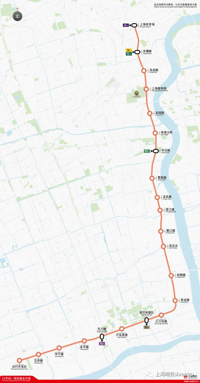 23号线一期工程:23号线一期是新一轮轨道交通线网中新增的市区线路,串联了闵行开发区、紫竹高新区、吴泾转型地区、徐汇滨江地区等重要区域,途经闵行区和徐汇区两大行政区,线路全长约28.63公里,共设22座车站。目前,江川东路站已封顶;墨江路站、上海体育场站正在进行结构回筑。景联路站、徐浦大桥站正在进行围护结构及基坑开挖施工。文井路站、华宁路站、沪金高速站、紫竹高新区站、紫龙路站、澄江路站、华泾路站、龙瑞路站、上海植物园站正在围护结构施工,闵行开发区站一阶段道路翻交完成,东川路站、放鹤路站、吴泾北站、龙启路站、龙漕路站处于管线搬迁阶段。