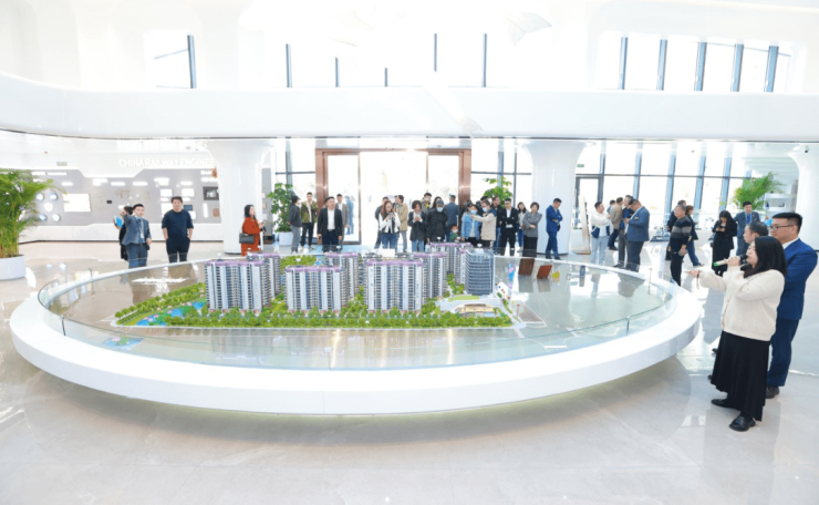 紧接着,来宾齐聚营销中心沙盘区了解项目景观、建筑及设计理念。景观设计院及建筑设计院技术总监与到场来宾分享了项目绿色、运动、智慧三大价值开发理念及园林水景设计风格。中国中铁·世纪尚城从整体规划开始,便力求寻找园林营造和自然环境的和谐统一。项目占地6.43万方,1.5超低容积率和超高绿化,定义低密、舒适人居新境界。其内外双公园和活水景观的岛居规划,让社区居住氛围媲美目前上海在售别墅社区。同时,整个项目主打瞰景高层、亲水叠墅,辅以配套商业及酒店,让安家水畔、亲水而居的梦想从此触手可及。