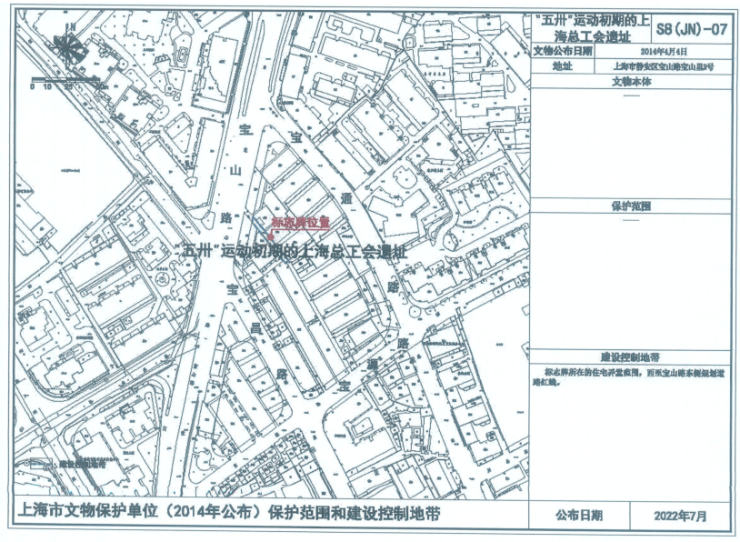 地块内“五卅”运动初期的上海总工会遗址为上海市文物保护单位,可结合所在规划地块的建设开发予以保护更新。