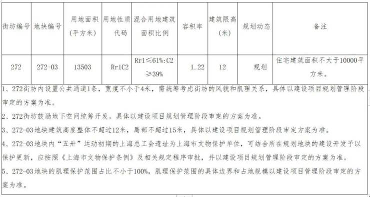 规划272-03地块内历史建筑建筑面积不少于1.49万平方米,具体保护更新方式以建设项目规划管理阶段审定方案为准。