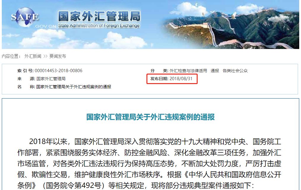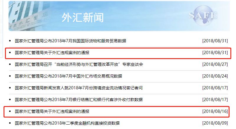 据报道,2018年7、8月间,外汇局出人意料地连发数文,表明自己严控外汇决心的同时,更以点名形式,把近年来违反外汇管制相关条例的案例通报了个遍。
