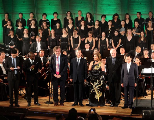 由联合国教科文组织向全世界特别推荐的交响曲《人文颂》,近日在上海世博会博物馆剧场由深圳交响乐团及合唱团再次奏响。这部合唱交响曲是由中国当今有世界影响的著名作曲家王宁创作的第五交响曲,是为交响乐队加混声合唱与童声合唱而作,内容是弘扬儒家人文主义思想的核心价值观,由“仁、义、礼、智、信”五个乐章加序曲与尾声构成之七个乐章的鸿篇巨制,2011年首演即好评如潮。2013年受联合国教科文组织邀请,于9月21日“国际和平日”在巴黎总部大会堂欧洲首秀即轰动欧洲乐坛,各界交口称赞,央视新闻联播及海内外各大媒体及网站相继报道。