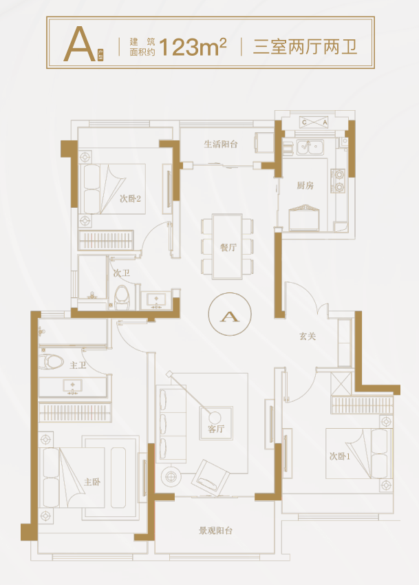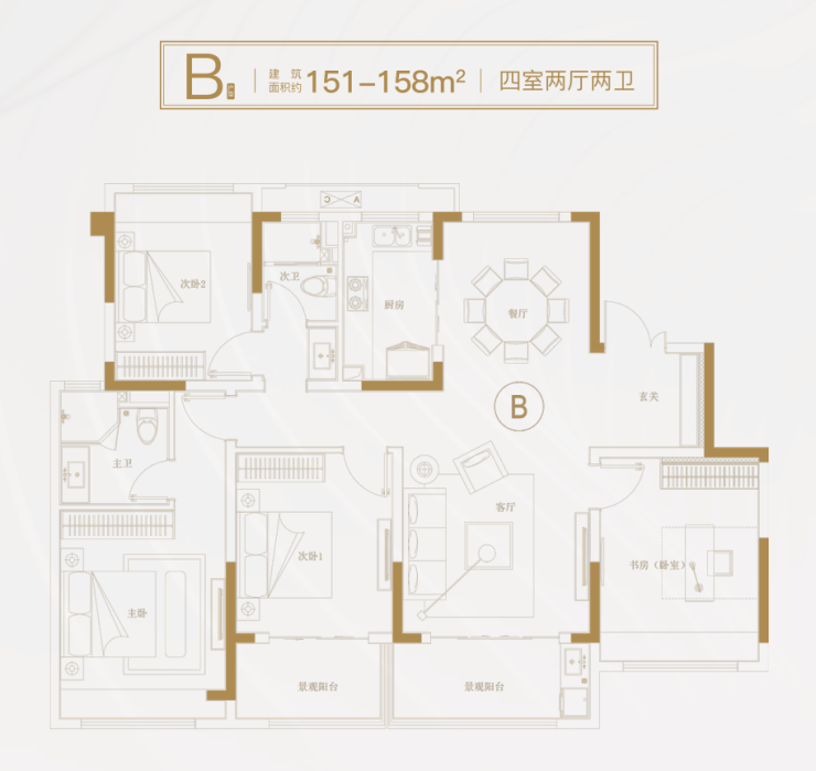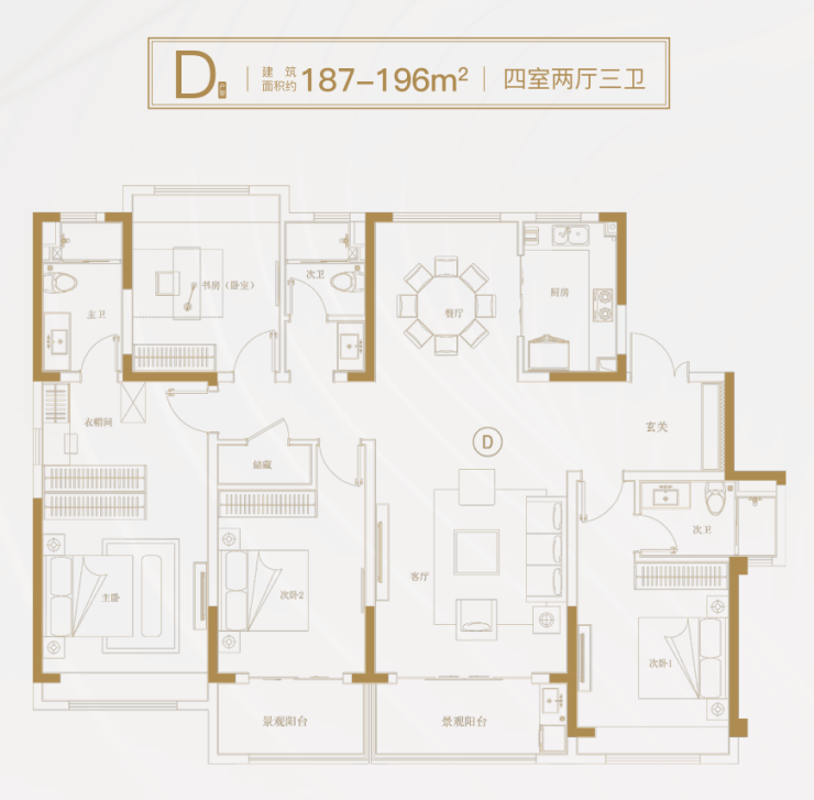 主卧套房式设计,独立飘窗、卫浴,充满着尊贵与品味,归家便可卸下疲倦,尽享优雅从容。