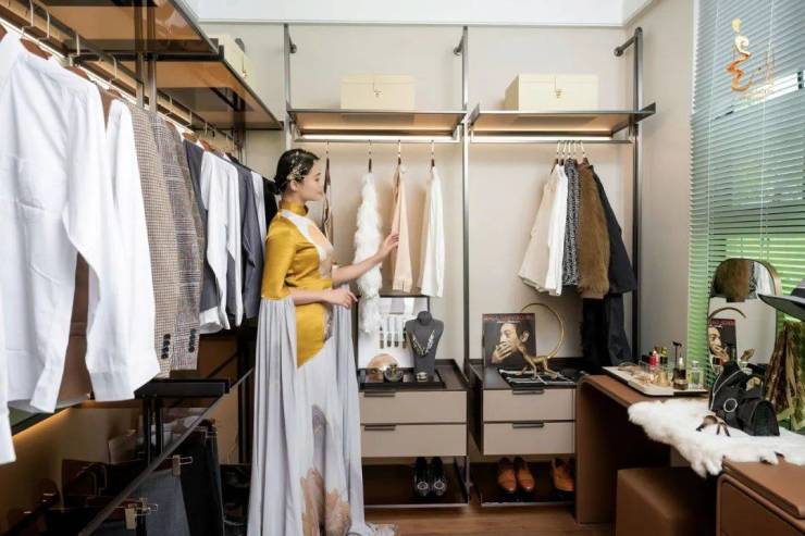设计,不止是对外观的追求,更多的是在创造一种生活的范式。通过入户玄关走进样板间,主生活区朝南设计,南北通透清风鲜氧常伴,精巧设计让客厅、餐厅、阳台一字排布,绘制出市场少见约3.2米层高,轩阔宽厅在视觉上显现明朗、舒适之感;在功能上,奢阔尺度可随时让宽厅切换N种角色:一处款待宾客的气度宴厅、一处插花品茗的聚会天地、一处围坐观影的家庭休娱地,舒适欢畅的格局,带来恰到好处的温馨生活体验。