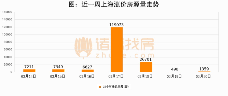 根据诸葛找房数据显示,上海24小时涨价房源量为1359套,较03月19日增加869套,环比上涨177.3%。与此同时,涨价房源占比小幅扩大,业主信心有所提升。