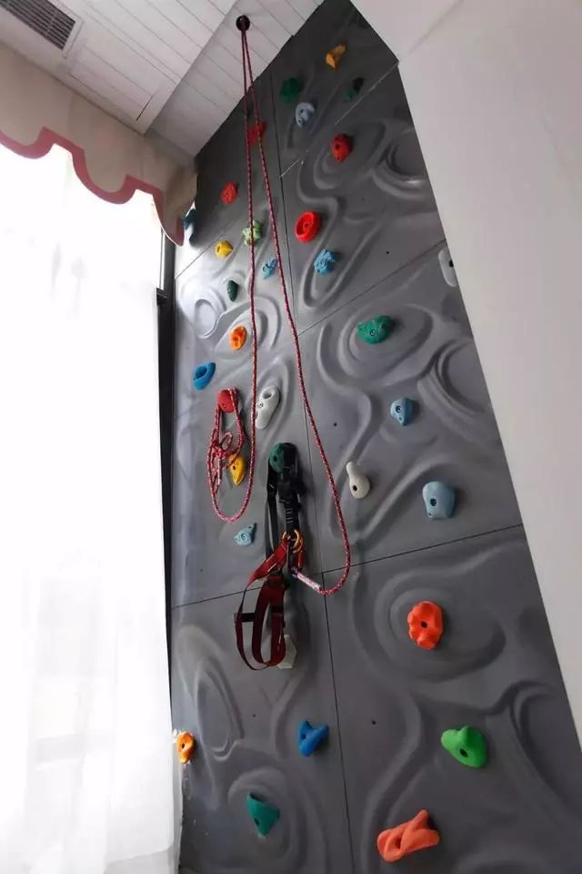这是小孩子的攀岩区,上方做了一个中央空调,让整个房子的品质感上升了。