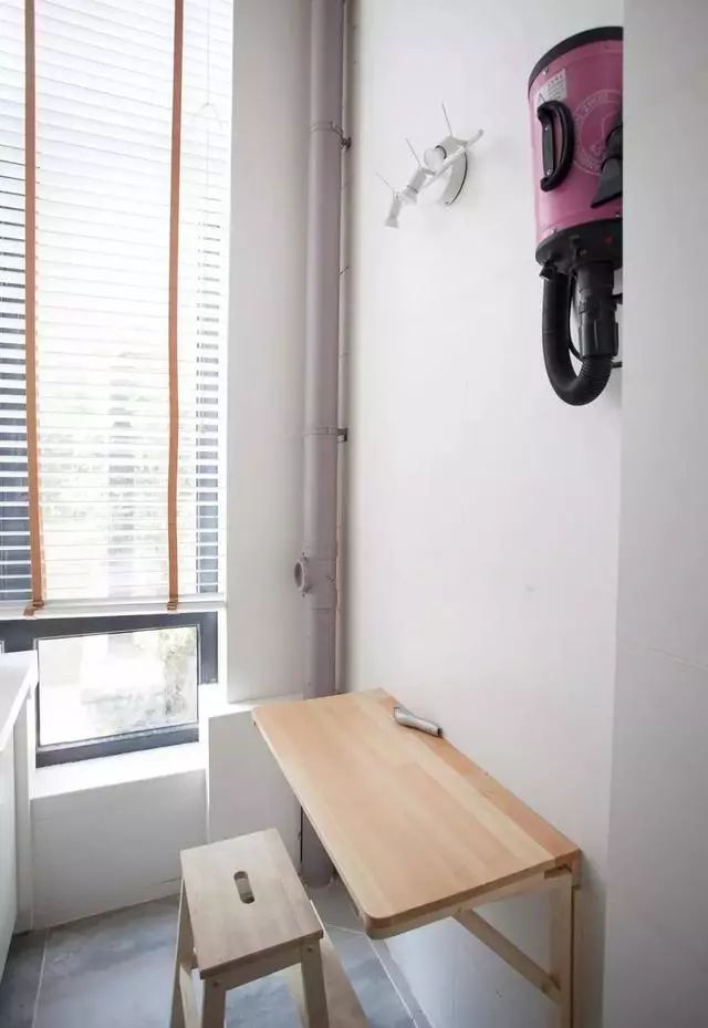 厨房空间小一些,只有8㎡左右,因为空间小,所以我直接请了木工师傅来家里定制这些家具,所以这边的桌子和其他的木质家具都是现场定做。想想还挺刺激的。