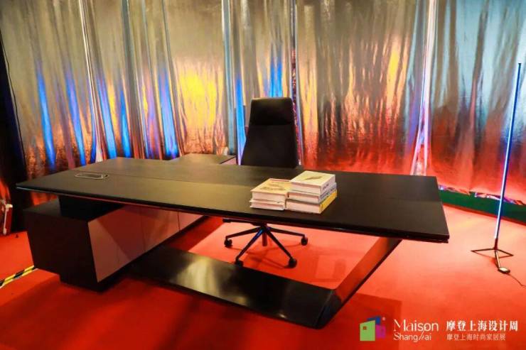 在场景营造上,以百老汇经典红为基底,构建沉浸式舞台叙事场域,赋予办公产品 “戏剧化呈现” 的仪式感;同时引入银色反光材质,以赛博朋克式的未来肌理打破复古基调的单一性,在 “经典红的温暖叙事” 与 “银色反光的未来感” 之间形成强烈视觉反差,以此强化 “解构重组” 的核心主张,为人们带来沉浸式的时尚空间体验。
