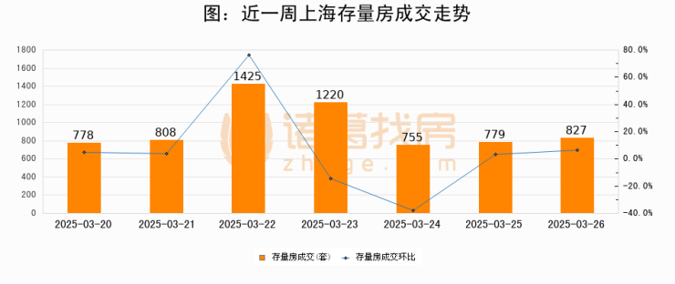 从存量房来看,2025年03月26日上海存量房单日成交827套,比昨日增加48套,环比上涨6.2%。从近一周存量房成交来看,上海存量房日均成交套数为941套,03月26日单日成交827套,低于近一周平均水平12.1%。