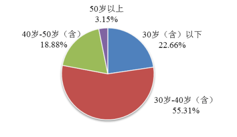 贷款职工中,30岁(含)以下占22.66%,30岁-40岁(含)占55.31%,40岁-50岁(含)占18.88%,50岁以上占3.15%;购买首套住房申请贷款占81.21%,购买二套及以上申请贷款占18.79%;中、低收入占85.28%,高收入占14.72%。
