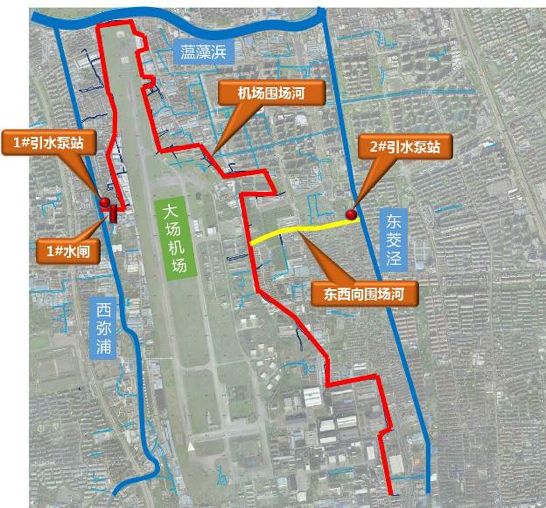 机场围场河流域范围位于宝山区庙行镇西部,西与大场镇相邻,南与静安区接壤,河道全长约7.65km,是市管33条亟需治理的黑臭河道之一。