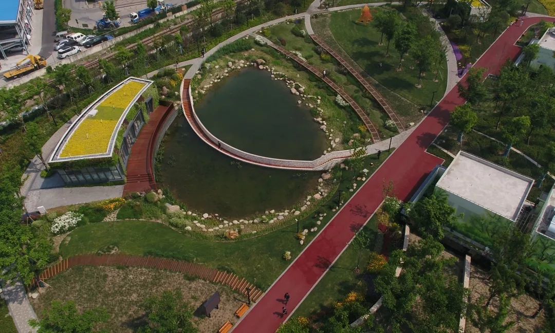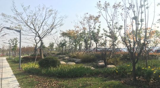绿地内雨水的合理循环利用,营造了良好的生态环境,通过构建水生态系统,实现了场地内的生境复育及生物多样性拓展。