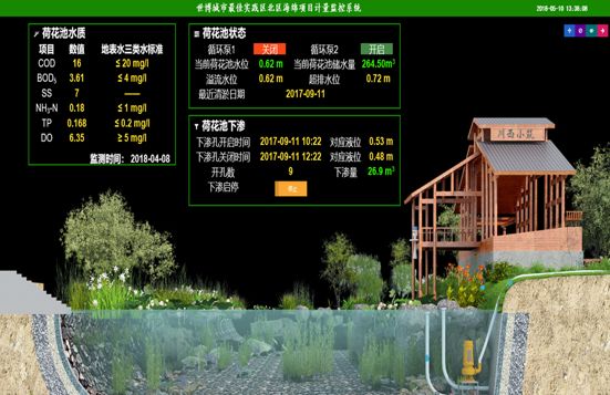 充分利用世博会时已建成活水公园,增加更多的高渗透性绿地,并用科技手段智能化运行措施和后评估管理,对区域降雨量、雨水收集量、综合利用量等进行实时监控及自主分析。
