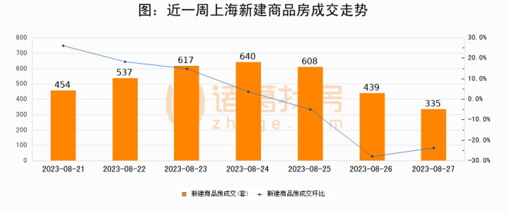 【上海成交日报】08月27日新房成交335套;涨价房源251套