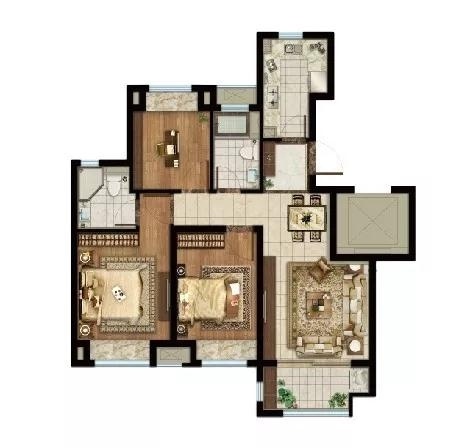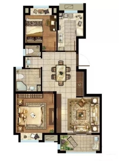 83平两室:主次卧各在南北而居,面宽分别是3.4米和2.8米,尺度适宜,生活作息互不影响;而且两个卫生间设计,家人在使用上会更加从容。整体来看,该户型既做到了功能性的齐全,又保证了总价的有效控制。