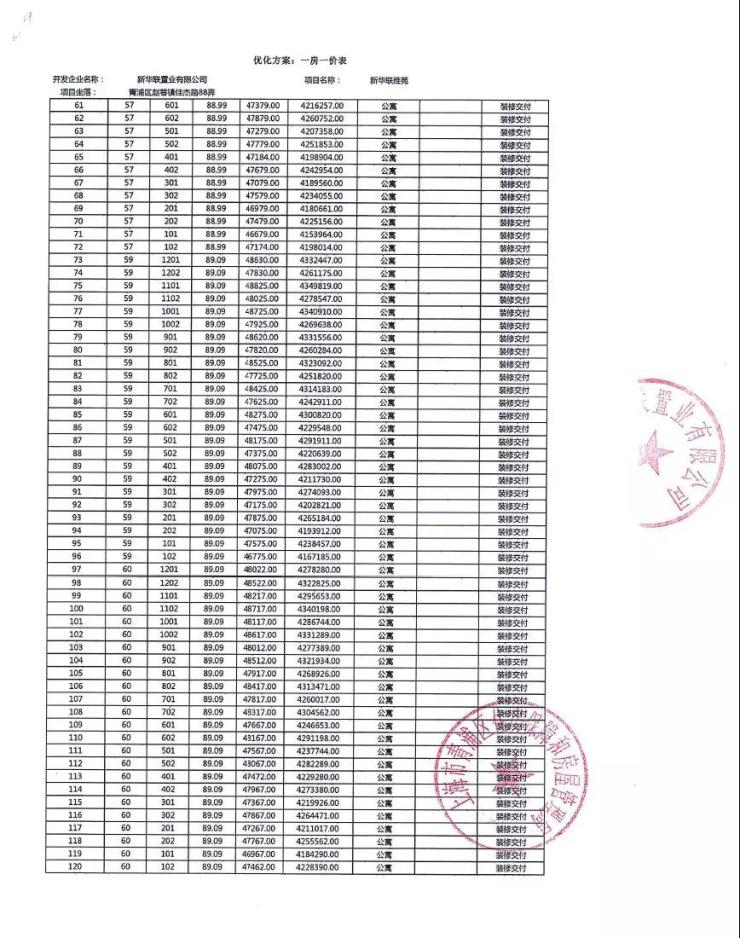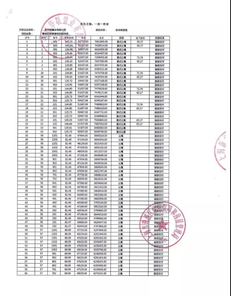一房一价表: