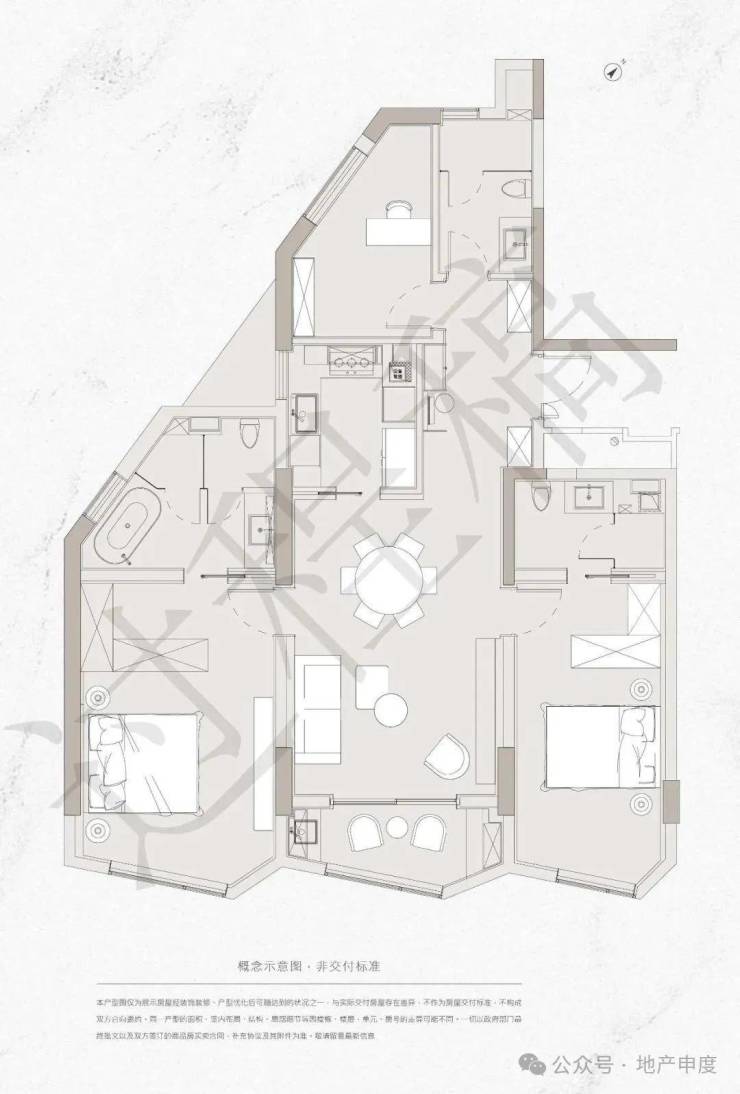 此外社区车位比传闻是1:1.2,物业费高达12元/平(具体以实际为准)。更绝的是,由于地块不规整,部分边套户型是三角形,这或影响居住。