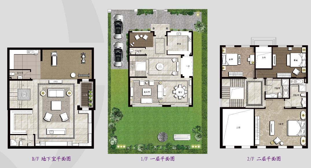 英庭名墅别墅建筑面积约222-270㎡,地上两层、地下一层,其中二楼挑高约6米,完全可以再隔出1层,空间将得到较大的利用。英庭名墅别墅有ABCD四种户型!A/B户型南北为干挂石材,东西为葡萄牙砂岩;C/D户型全部为干挂石材,设计了保温隔热材料。A户型地上约226.4㎡,实际使用面积约336㎡和约343㎡;B户型地上面积约270.69㎡,实际使用面积约413㎡和约415㎡;D户型地上面积约261㎡,实际使用面积约374㎡、约401㎡、约409㎡。