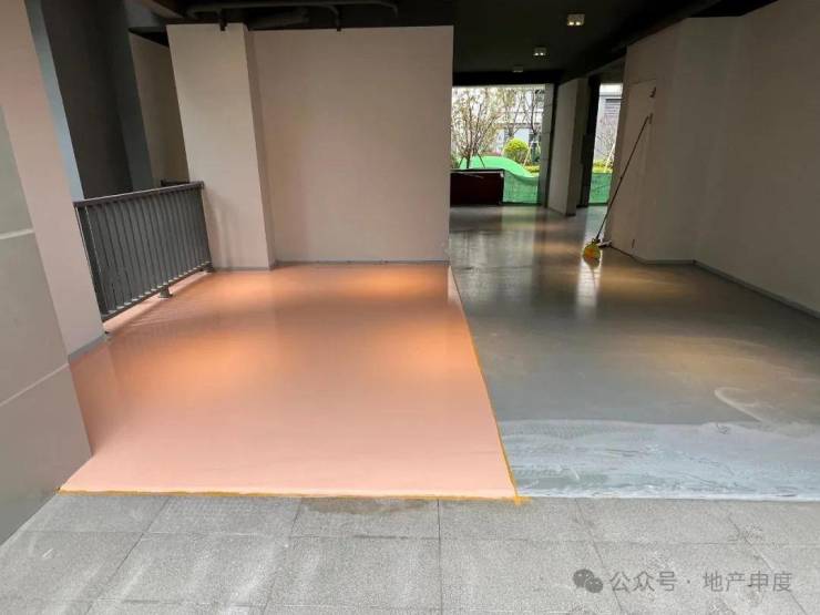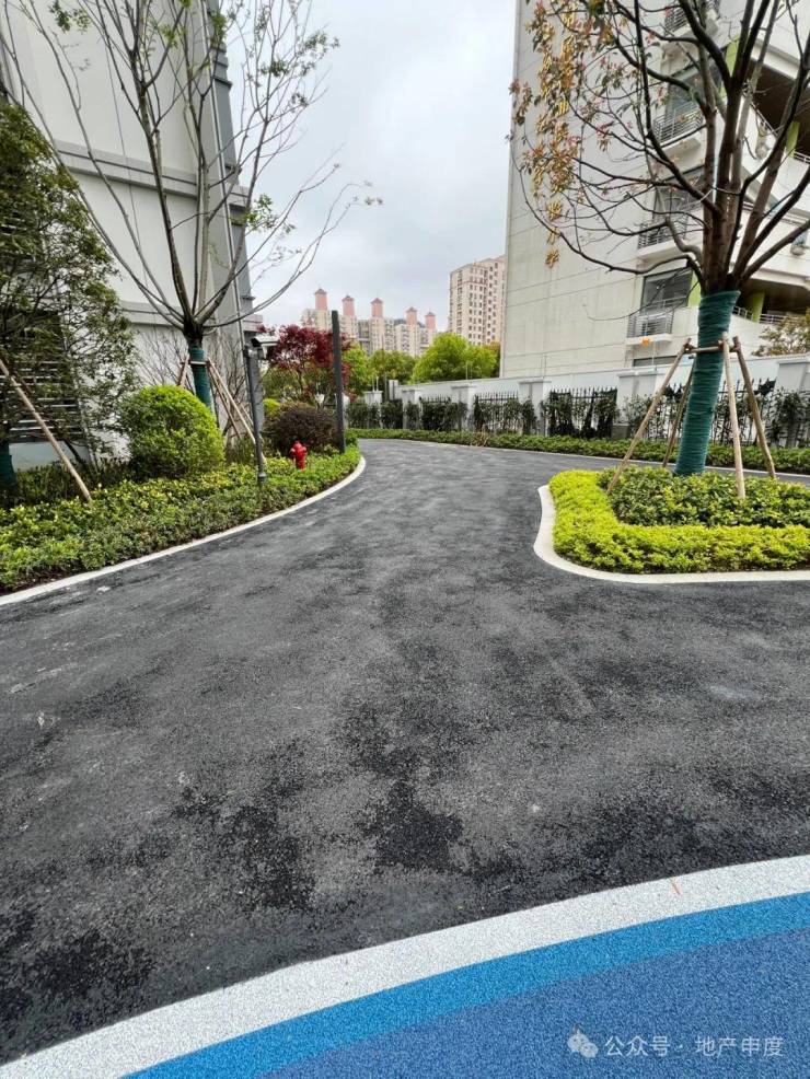 例如小区的架空层区域,使用了大面积涂料和白墙。楼道、连廊、小区部分地面等区域毫无“品质感”可言。