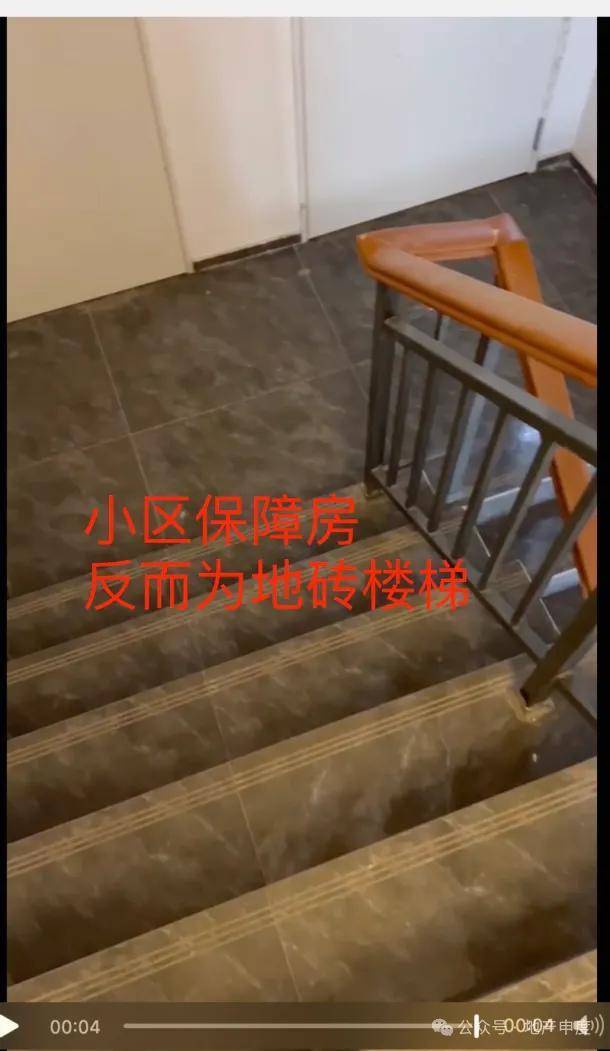 不仅如此,社区内交付给业主的楼梯间使用的是水泥阶梯,相比较而言,小区内的保障房楼梯却使用了瓷砖铺设。
