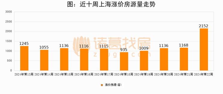 从调价房源来看,第22周上海涨价房源2152套,较上周上涨84.2%。与此同时,22周涨价房源占比提升7.56个百分点,业主信心持续恢复。