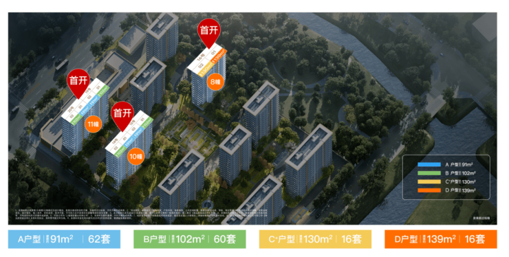 相比建面约91㎡小空间大舒适,同户型布局建面约102㎡不仅仅是面积的增加,更是生活方式的升级,高得房飞机户型,减少过道浪费,餐厅位置比常规户型更阔绰,小家庭聚餐其乐融融;双卫三段式带飘窗配置,空间划分清晰,互不干扰,让洗漱也能沐浴在阳光之下;南北双270°环幕视野,不仅采光通风更优,风光自然入怀,为休憩时光添了几分诗意与惬意。
