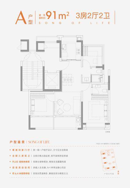 对于都市新锐家庭,或甜蜜三口之家,建面约91㎡市场少见三房两卫起步高配,绝不是功能与品质的妥协,类一梯一户设计,独立入户光厅玄关,即赋予回家满满尊崇仪式感,又增加收纳场景;270°转角飘窗,铺上软垫与靠枕,便成了放松身心的“家庭小角落”;约6.4米厅卧联通双阳台,奢阔开阔空间尺度,每一处细节都在诉说舒适与实用的精准平衡。