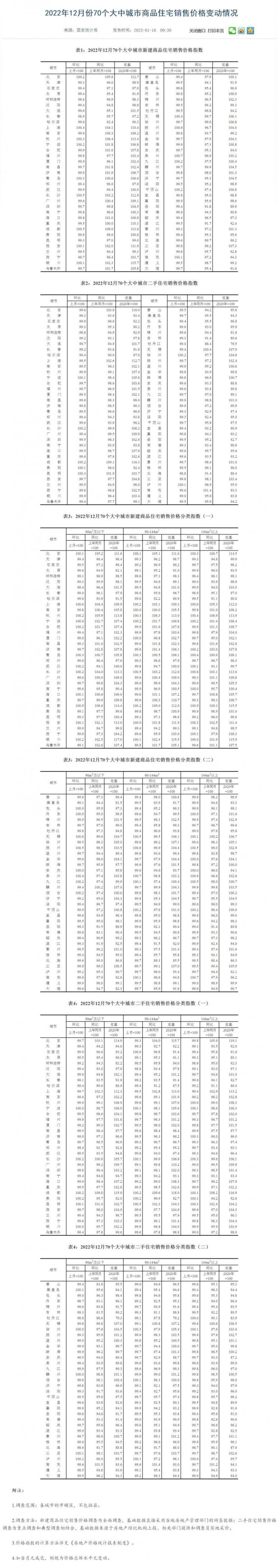 12月份,70个大中城市中,新建商品住宅销售价格环比下降城市有55个,比上月增加4个;二手住宅销售价格环比下降城市有63个,比上月增加1个。
