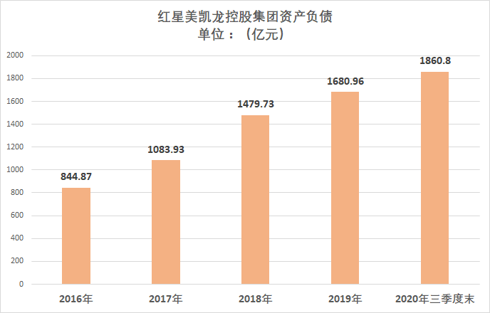 母公司红星美凯龙控股集团未上市,暂不清楚其具体负债率情况。但可以从一些公开数据中一窥端倪。截至2020年三季度末,红星美凯龙控股集团债务总额达1860.8亿元,比2016年底的844.87亿元增长120.25%。