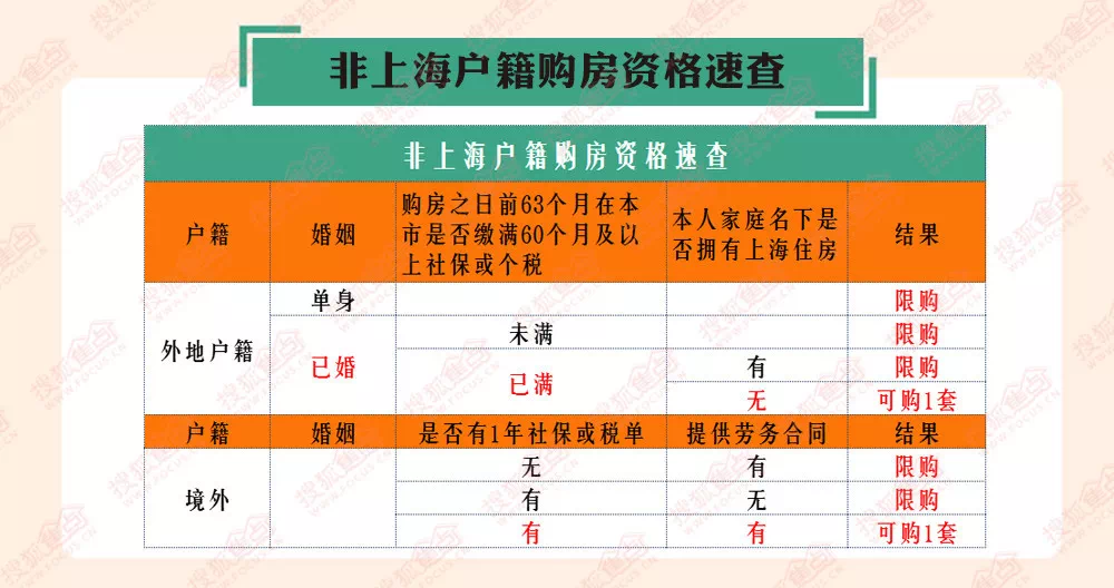非沪籍家庭限购一套上海住宅,但夫妻双方必须至少有一人社保或个税,自购房之日前连续缴纳满5年及以上。