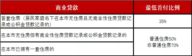 (1)居民家庭购买首套住房(即居民家庭名下在本市无住房且无商业性住房贷款记录或公积金住房贷款记录)申请商业性个人住房贷款的,首付款比例不低于35%。