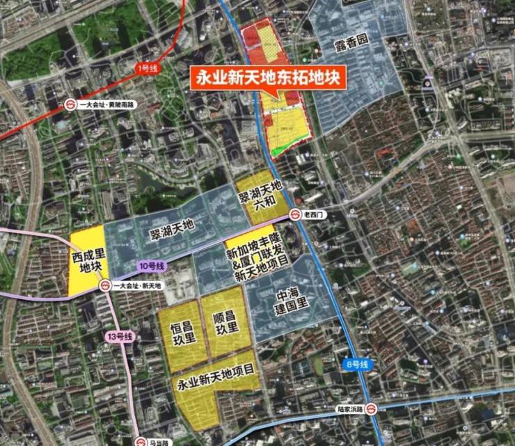 2025年2月14日,上海联合产权交易所发布公告,上海永业城市更新建设发展有限公司拟转让50%股权,涉及地块正是翠6北面的是永业新天地东拓地块。