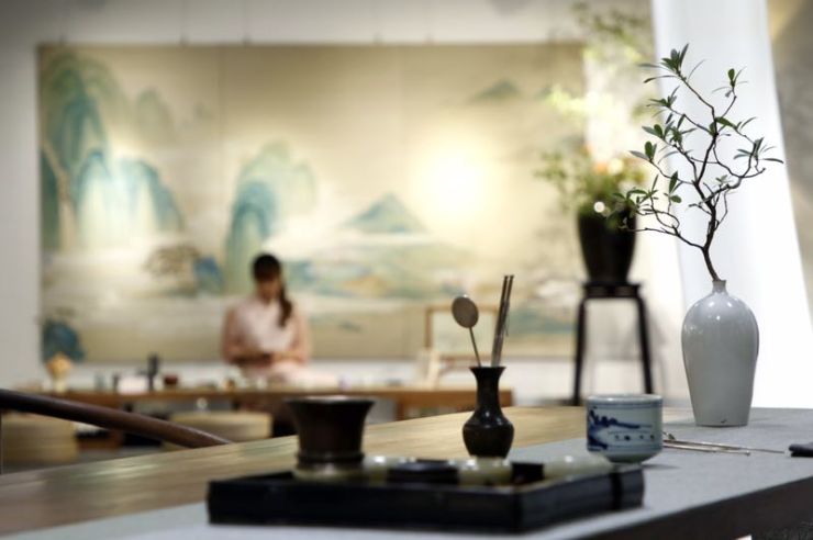 这个由瑞璽品牌创始人隋欣策划的“东方之美 禅之所在”空间文化展位于城外诚DXD北京设计互联中心分会场内, 初入展厅,清新的刺绣、精致的插花、馥郁的焚香、优雅的琴音同时冲击着视觉、嗅觉、听觉神经,脑海里关于“琴棋书画诗酒茶”的憧憬顿时被调动起来。