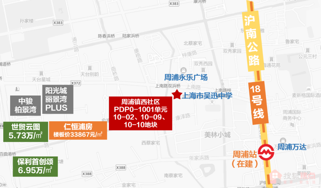 此外,地块西侧为浦房集团于2018年11月以底价竞得的周浦镇西社区PDP0-1001单元南块04-01地块、04-04地块,彼时成交楼板价为33867元/㎡,目前该项目由仁恒代建,有望于下半年入市。