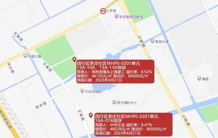 今年4月21日,上海2023首轮土拍,闵行莘庄两幅“抢手”宅地竞拍空前激烈。13A-10A、13A-13A地块共吸引28家竞买人,最后被保利建工联合体拿下;16A-07A地块共吸引33家房企参与竞拍,最终被中华企业拿下。