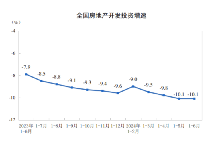 1—6月份,全国房地产开发投资52529亿元,同比下降10.1%(按可比口径计算,详见附注6);其中,住宅投资39883亿元,下降10.4%。