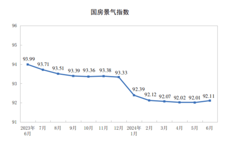 6月份,房地产开发景气指数(简称“国房景气指数”)为92.11。