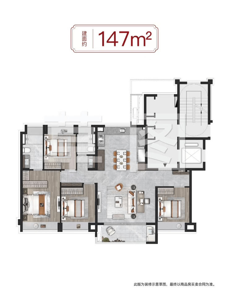 首期预计推出建面约99-147㎡高层、建面约165-175㎡叠墅。