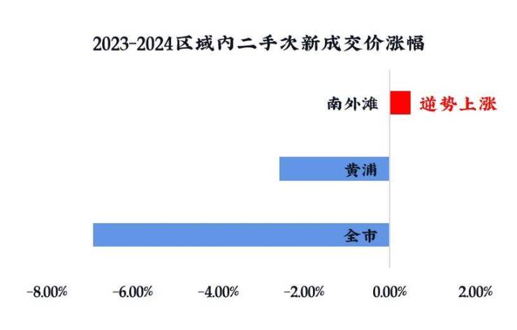 南外滩不仅次新成交价格领跑,并且还是唯一一个去年还在涨价的板块
