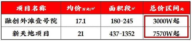 开盘均价约21W,主推面积至少也有400+㎡,上车起步价都要7500W+