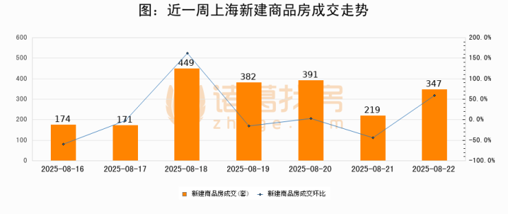 【上海成交日报】08月22日新房成交347套、二手房539套;涨价房源138套
