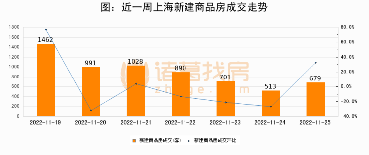 【上海成交日报】11月25日新房成交679套;涨价房源202套