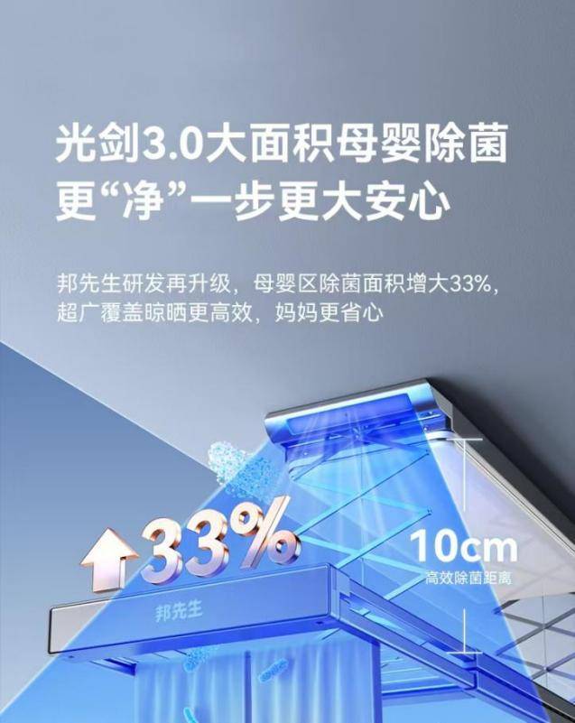 对于现代五项世界冠军罗帅而言,晾衣架的除菌水平是他格外关注的点,“作为运动员,我在生活卫生上总是格外注意,M66 Pro两侧大面积的除菌功能深得我意”。M66 Pro在除菌效果上做了进一步升级,从光剑2.0技术到光剑3.0技术,除菌率高达99.9%,10cm的高效除菌距离,将覆盖率提升至33%,实现了广域高效的除菌效果。当感应到人来时,除菌功能会自动暂停,人离开后,除菌继续,通过人性化的设计让用户体验到安全与便捷。