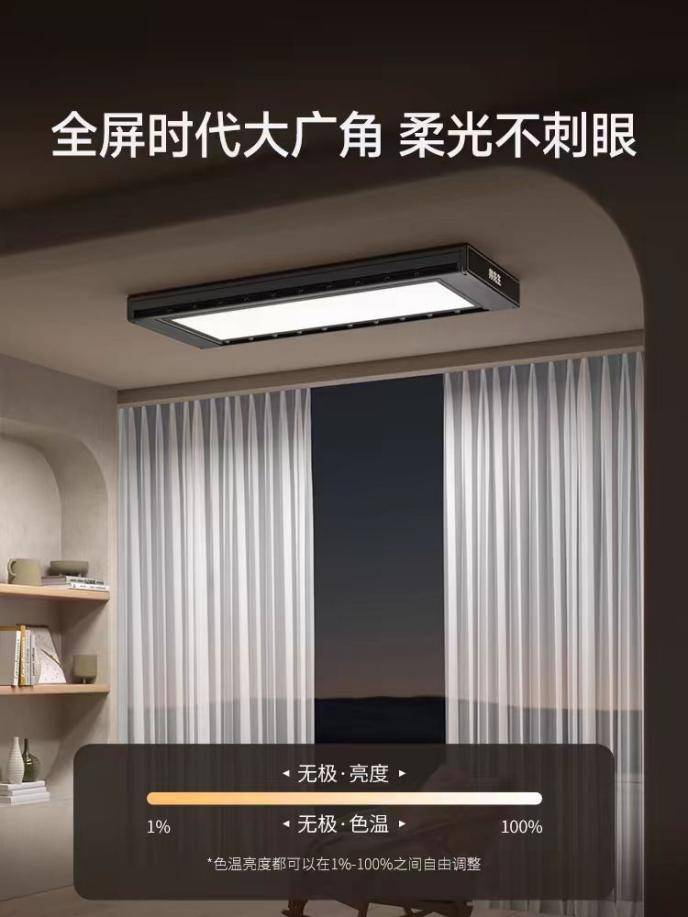 晾衣机收起时,可以实现9.7cm的一体式隐形,变成一盏氛围灯。灯光具有防蓝光、防频闪、高显指等特性,获得权威机构专业品鉴认证,带来更好视觉体验的同时星光熠熠氛围十足,也能帮助保护家人的用眼健康。
