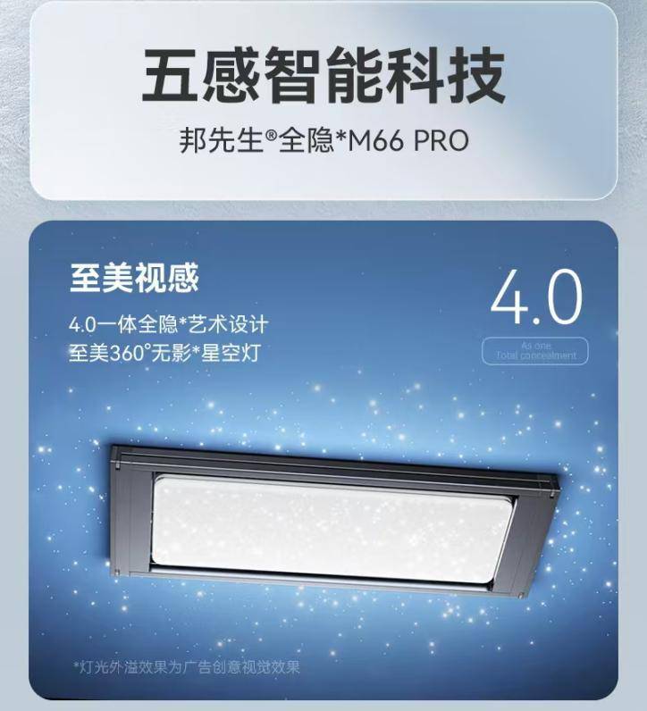 顶灯设计上,采用360°全曲面设计,全方位广域照明,让整体视觉更加开阔。别出心裁的星光灯立体曲面,下方晾晒衣物,四侧放光,不被衣物遮挡光线,打造阳台星空氛围感,如繁星点缀,营造浪漫晾晒氛围。