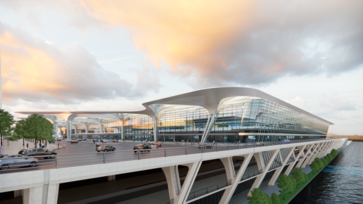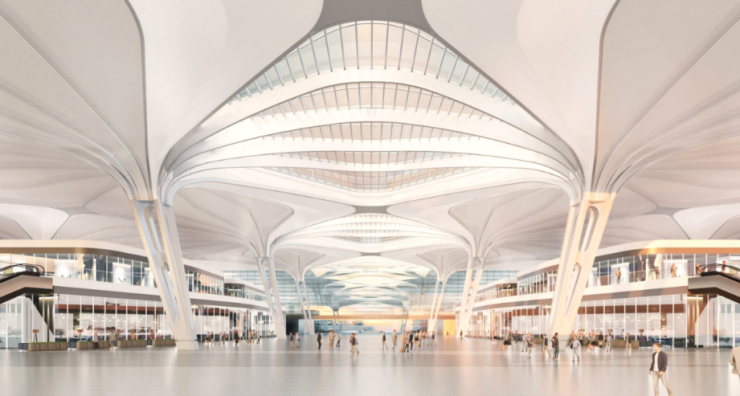 作为上海铁路总图四主多辅中的主客站之一,东方枢纽上海东站不仅承担着重要的国家铁路功能,同时兼顾服务市域铁路和航空功能。建筑造型采用建筑、结构、光伏一体单元式建筑理念,内部空间结合“到站即中心”的理念,创造城市中庭、综合换乘空间,提升车站中心城市氛围和空间品质。