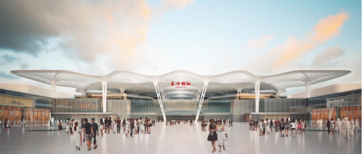 此外,该站采用立体交通组织系统模式,通过高铁与市域铁路站场拉开的空隙,打造中央换乘光谷,串联城市配套的交通设施,包括地铁、出租、公交、市域铁路等,形成一个上下贯通的空间,实现5分钟以内覆盖大多数换乘方式。