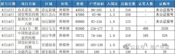 与此同时,上周认购的老静安新盘昌平云岸也认购结束,虽然没有触发积分,不过有981组认购,几近千人摇,认购率达到204%。与此同时,位于浦东中环的新杨思上园二期认购率也到达了207%。