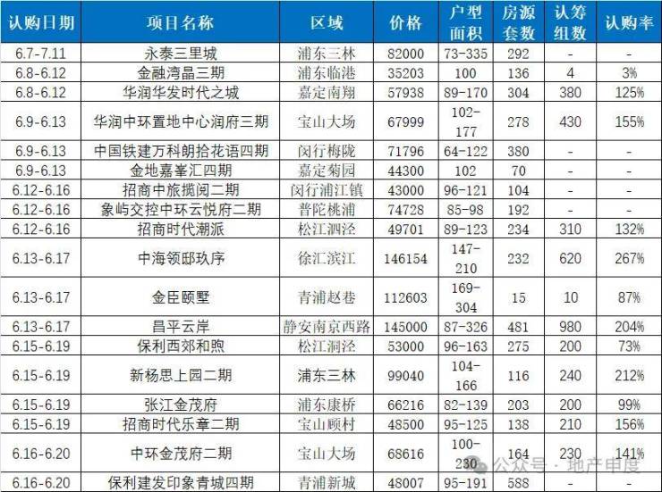 此外,上周末开启认购的招商时代乐章二期,在认购还剩一天的情况下,认购率也达到了156%。七宝的天安1号二期,认购率为153%,也还算可圈可点。